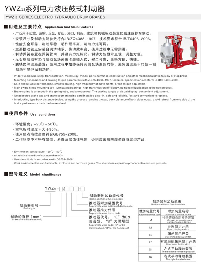 YWZ13系列電力液壓鼓式制動器