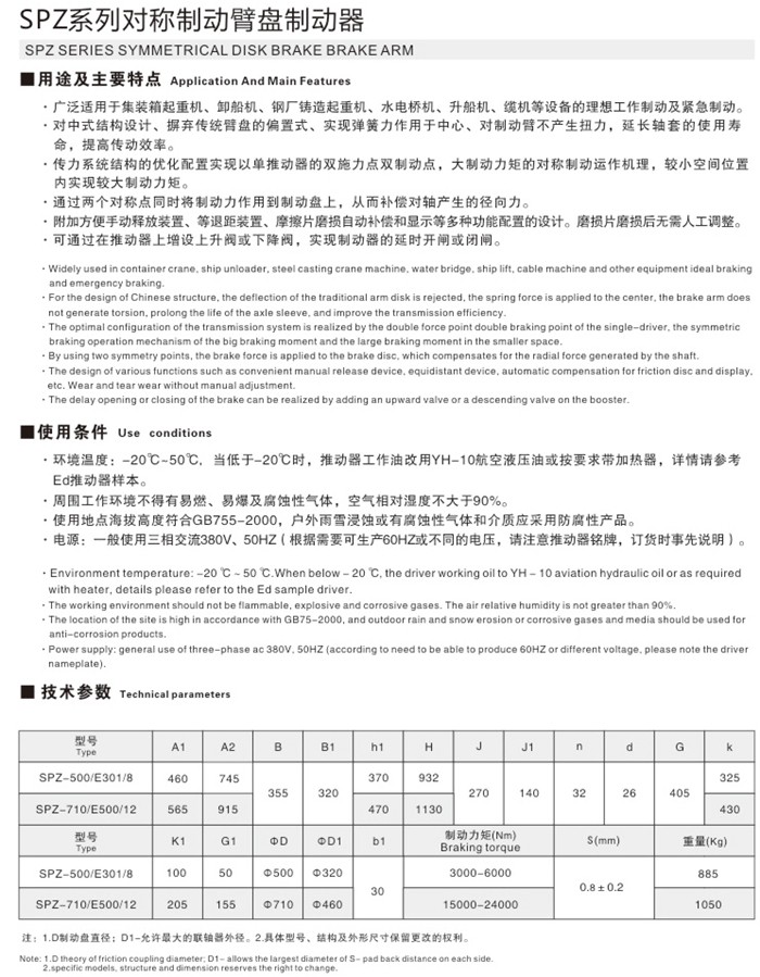 SPZ系列對(duì)稱制動(dòng)臂盤氣動(dòng)鉗盤制動(dòng)器